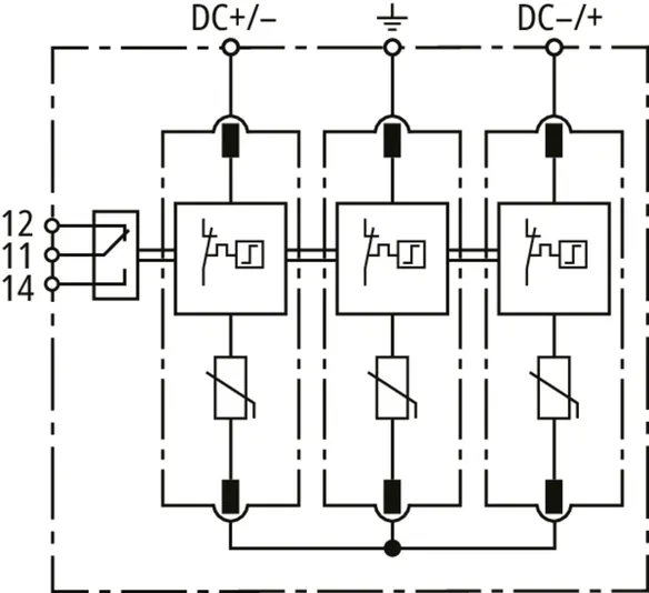 | Corriente nominal de descarga (8/20 µs) [(DC+/DC-) --> PE] (In ) | 15 kA |