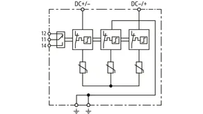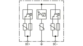Descargador de sobretensiones tripolar IP65 con dispoditivo de conmutación DC de dos etapas para inversores PV para protección de una entrada MPP.