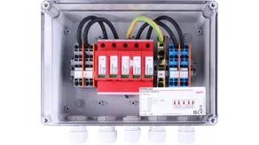 • Descargador de sobretensiones precableado y multipolo con protección IP 65 para instalaciones fotovoltaicas