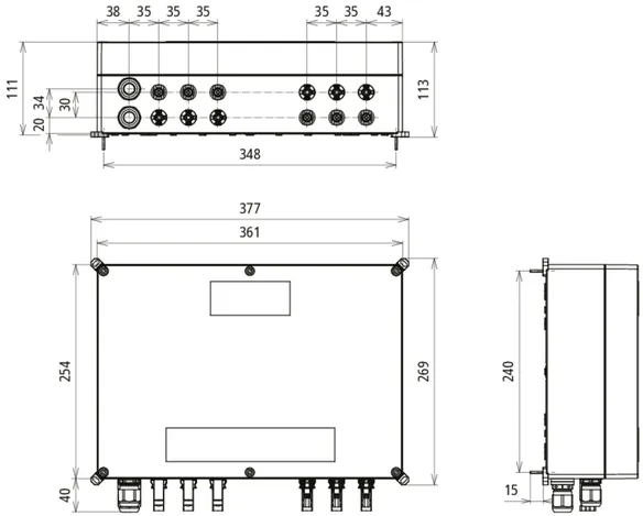 Caja de conexión a generador para sistemas fotovoltaicos de hasta 1200 V CC para la protección de tres entradas MPP y una cadena en cada entrada.