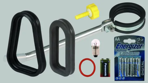 Ersatzteile (Glühbirne, Batterie, Fallschutzgummi, Dichtring, usw.) für unsere Sicherheitsgeräte.