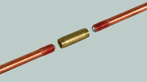 Earth rods for installing single earth electrodes for lightning protection systems and plants including connecting clamps.