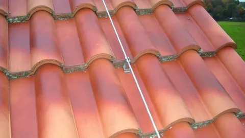 Las protecciones externas contra rayos en los edificios con tejado blando "de cañas" están hechas hoy con protección contra rayos HVI aislada.