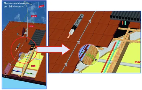 Sistema per l'impianto di captazione isolato di impianti di emissione / ricezione (antenne paraboliche, terrestri) o di edifici completi o parti di edifici.