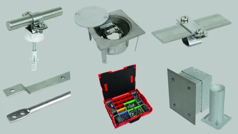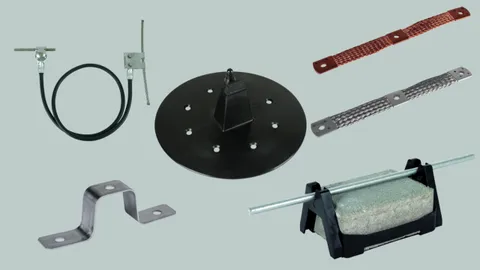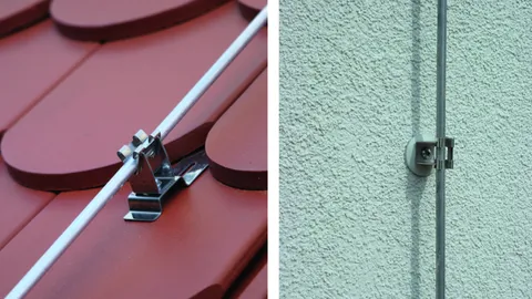 Adduzione a terra, linguette di connessione, staffa portafilo per tetti, cassette di sezionamento