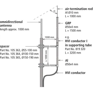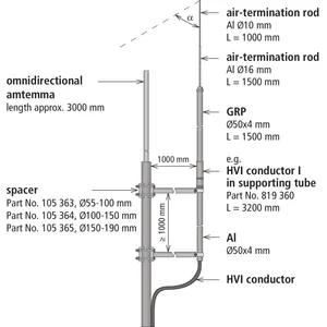 When installing an isolated air-termination systems at an omnidirectional antenna it has to be minded that an isolated air-termination rod provides a sufficient protective angle for the antenna to be protected. A sufficient separation distance s has to be kept as well.