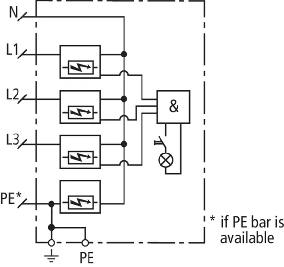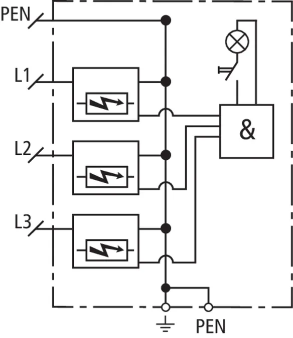 | Lightning impulse current (10/350 µs) [N-PE] (Iimp ) | 100 kA |