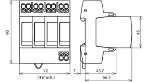 - Prewired complete unit consisting of a base part and plug-in protection modules