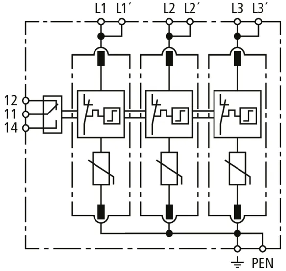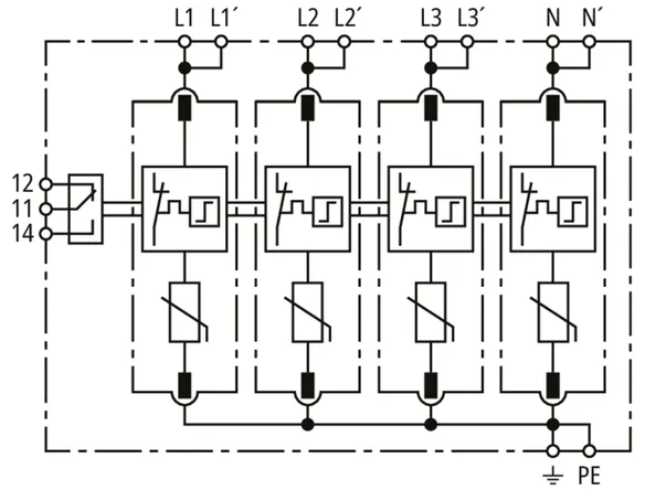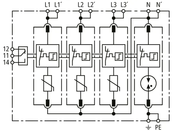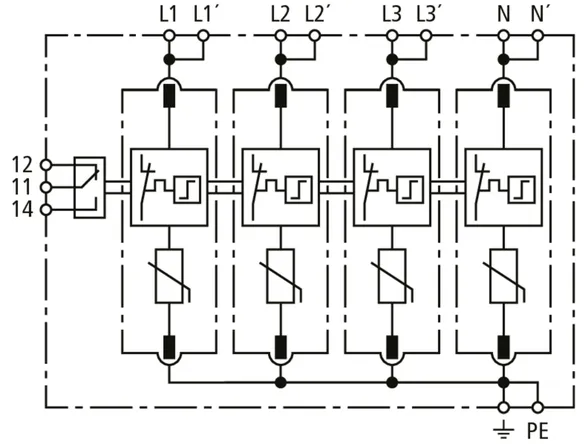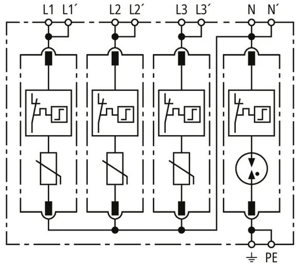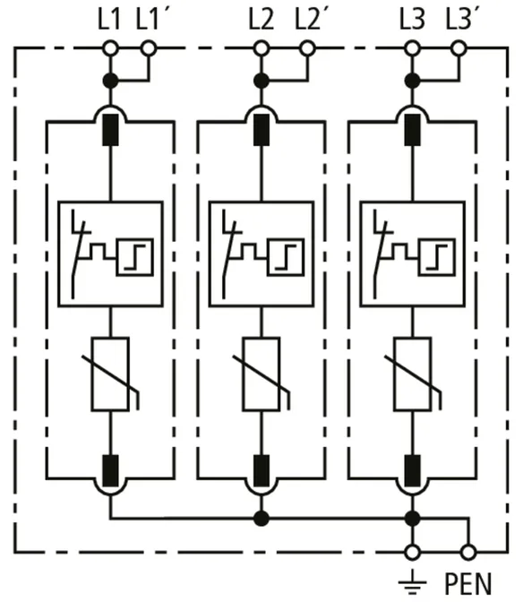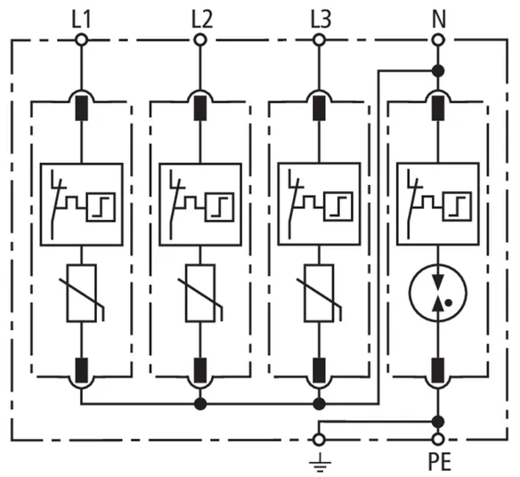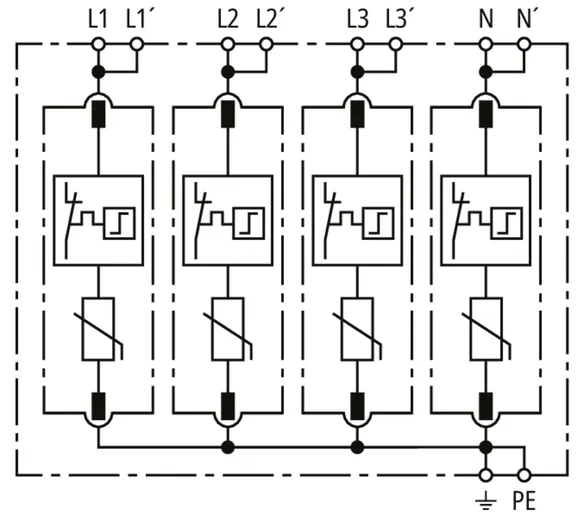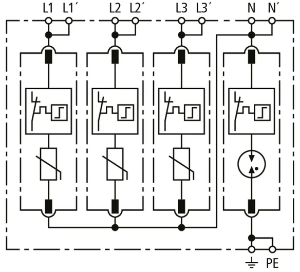 | Max. discharge current (8/20 µs) [N-PE] (Imax ) | 120 kA |