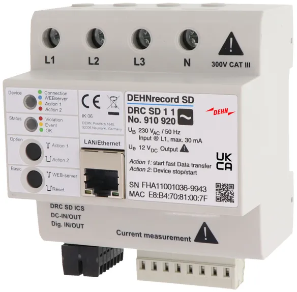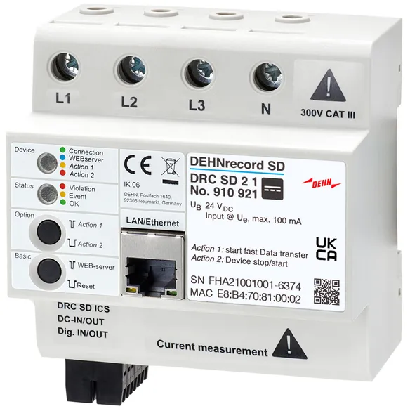 | Impulse current measuring range (8/20 µs to 10/350 µs) | 4-100 kA |