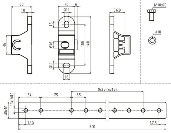 | Max. short-circuit current (AC 50 Hz / DC / 5 s) StSt (V4A) 30x3.5 mm / 40x5 mm | 750 A / T4 |