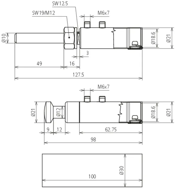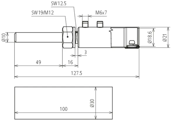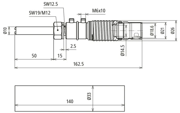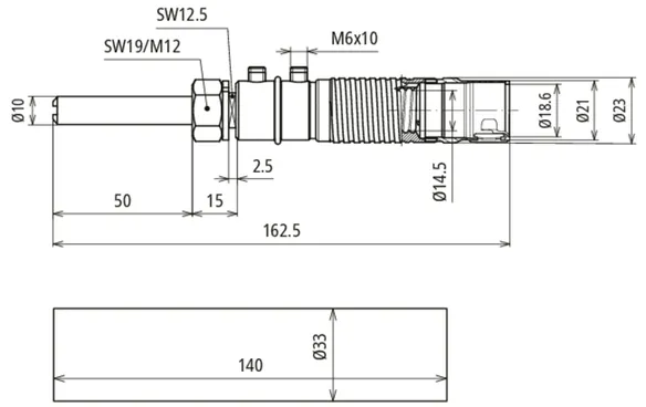 | Connection | Bolt Ø10 mm, L 50 mm with M12 thread with spring washer |