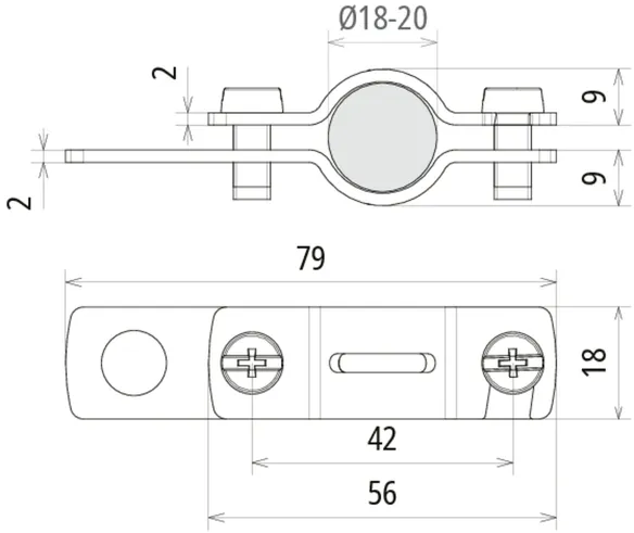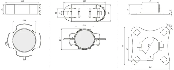 Fixing kit for attaching the HVI light plus Conductor to the HVI light plus supporting tubes, Ø40 mm, consisting of connection plate and fixing ring with stainless steel clamp for the sealing end (including four plastic holder halves and two cable ties).