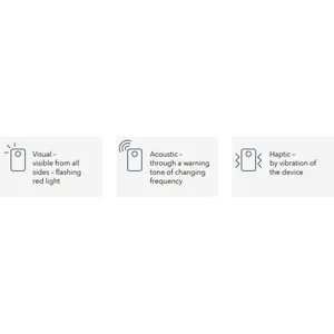 • Alarma triple. Las advertencias visuales, acústicas y hápticas impiden el acceso a las zonas de peligro.