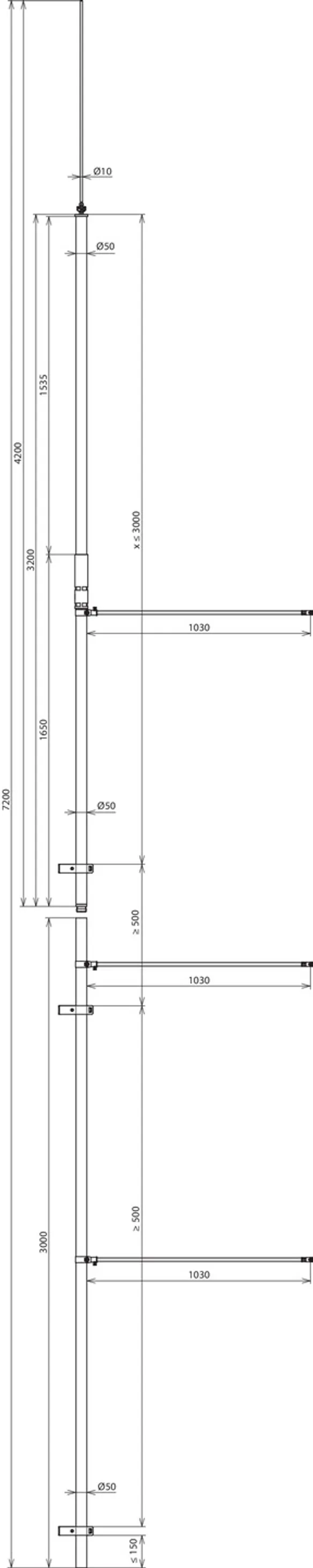 | Máx. velocidad del viento | (Montaje en pared con máx. longitud libre 3500 mm, Ø8 mm) 232 km/h |
