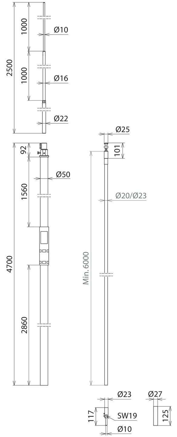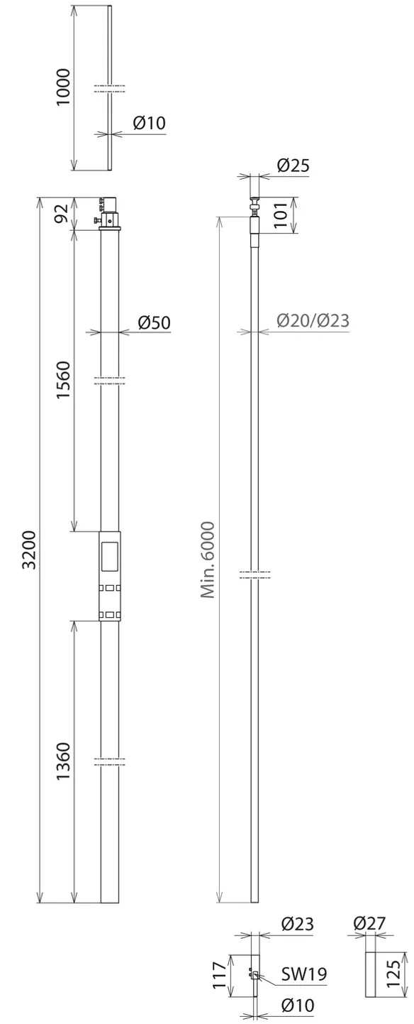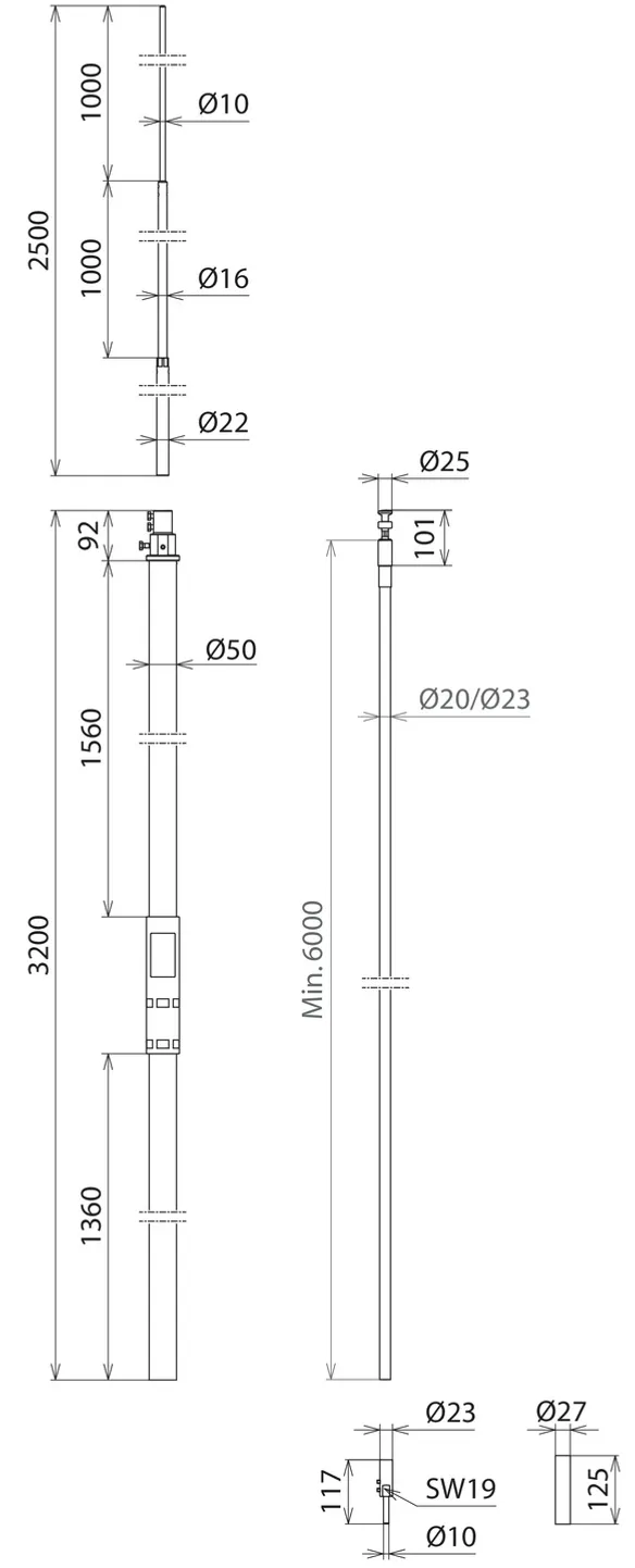 | Máx. longitud libre con punta captadora (montaje en pared) | 5500 mm |