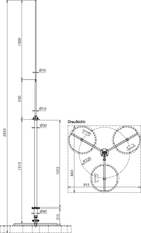 Radio del trípode 320 mm