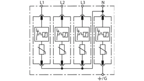 | Máxima tensión permisible de servicio AC [L-N] / [L-G] / [L-L] / [N-G] (MCOV) | 385 V AC / 565 V AC / 770 V AC / 180 V AC |