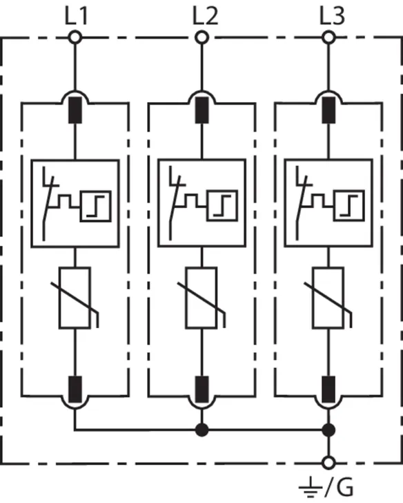 | Máxima tensión permisible de servicio AC [L-N] / [L-G] / [L-L] / [N-G] (MCOV) | 180 V AC / 370 V AC / 370 V AC / 180 V AC |