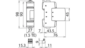 Descargador de sobretensiones unipolar y modular con la tensión del varistor asignada Umov = 750 V AC, compuesto por una base y un módulo de protección enchufable; con fusible previo integrado y contacto de señalización remota para el dispositivo de vigilancia (contacto conmutado libre de potencial).