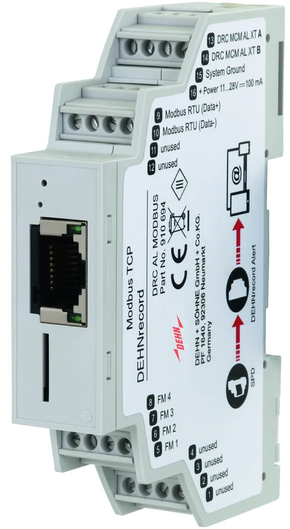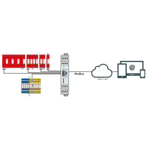 - Vigilancia de máx. 4 descargadores de sobretensiones con un contacto de señalización remota (FM) y hasta 150 descargadores BLITZDUCTOR XT (RJ 485)
