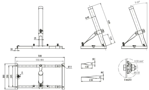 Soporte para tejados metálicos INOX para elementos captadores HVI o varillas captadoras: