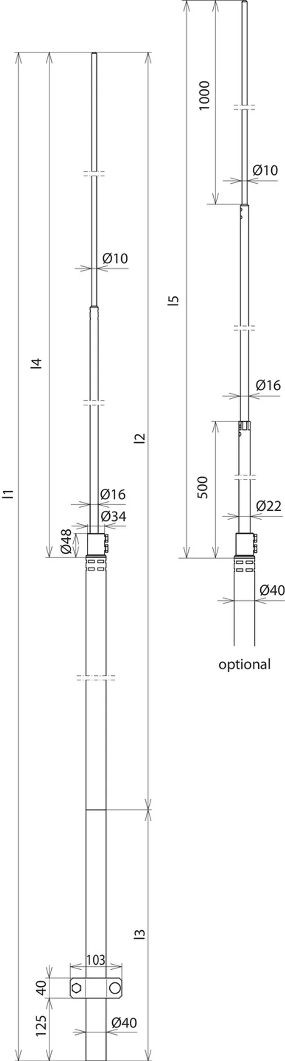 | Longitud máx. libre con punta captadora (l2) | 5000 mm |