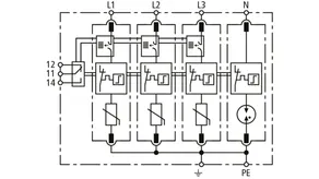 Descargador de sobretensiones modular con Advanced-Circuit Interruption (ACI) para redes TN-S (circuito 4+0); con contacto de señalización remota libre de potencial.