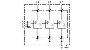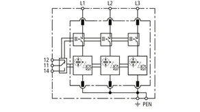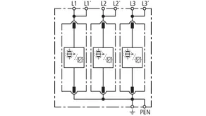 | Corriente de impulso de rayo total (10/350 µs) [L1+L2+L3-PEN] (Itotal ) | 75 kA |