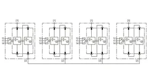 Kit compuesto por descargadores de corrientes de rayo y sobretensiones con raíl aislado de cableado de módulos para su uso en sistemas de inversor con anti PID activo con un desplazamiento de CC máximo de 750 V CC. Cableado de los sistemas de puesta a tierra de conformidad con la norma IEC 60364-4-44, tabla 44.A1 - RE y Z así como RE y RA conectados.