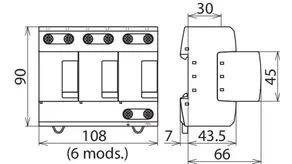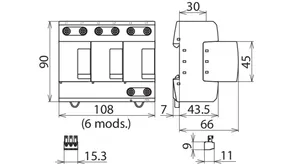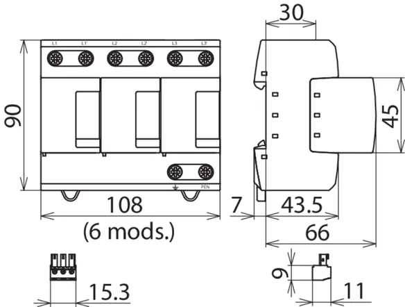 | DPS según EN 61643-11 / IEC 61643-11 | Tipo 1 + Tipo 2 + Tipo 3 / Clase I + Clase II + Clase III |