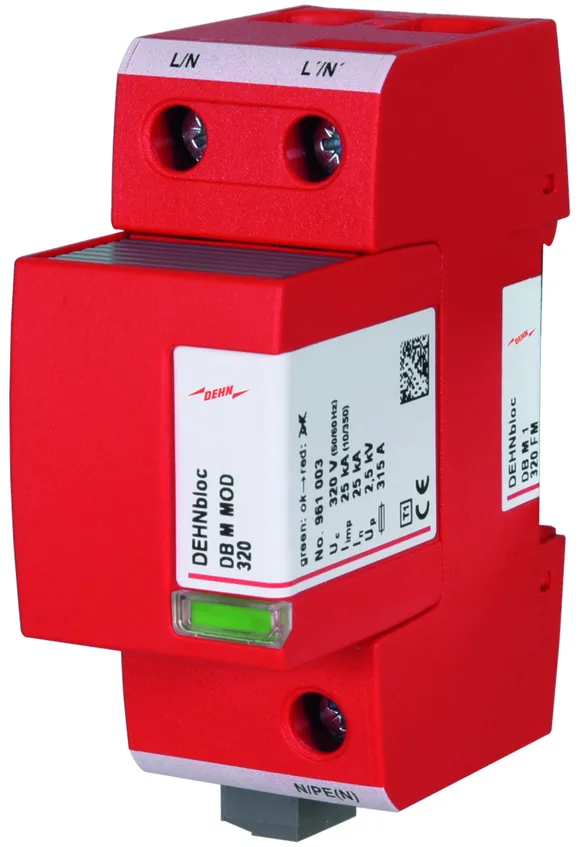 - Coordinado directamente con el descargador de protección contra sobretensiones DEHNguard, sin longitud de cableado adicional
