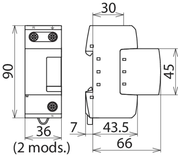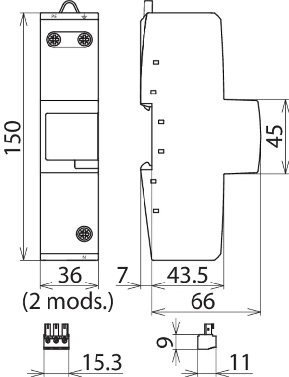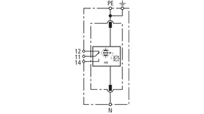 - Descargador de corriente total, especial para aplicación en sistemas TT, con circuitos 3+1 y 1+1 según IEC 60364-5-53, entre el conductor neutro N y el conductor de protección PE