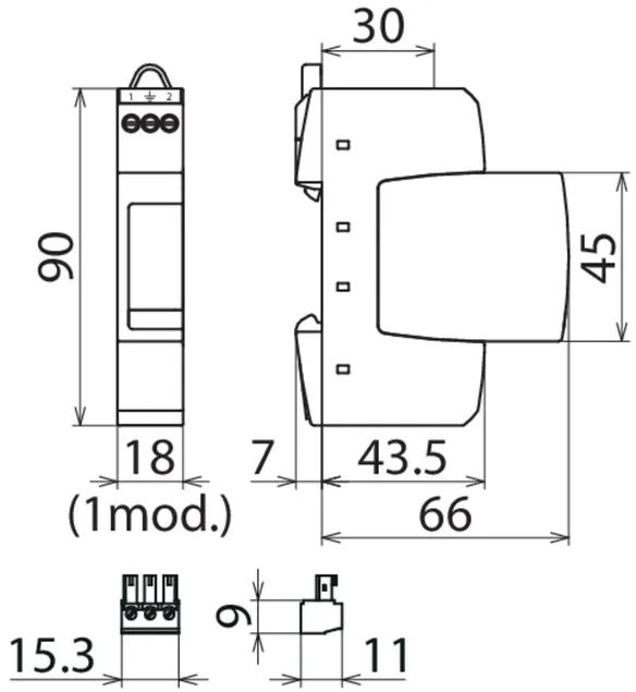 - Descargador de sobretensiones monofásico, compuesto por elemento de base y módulo de protección enchufable