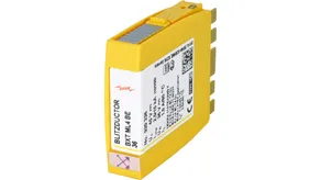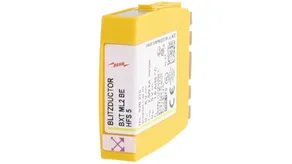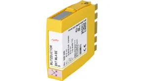 Módulo descargador combinado de corriente de rayo y sobretensiones con gran ahorro de espacio, con función RFID LifeCheck, para protección de un par de hilos en sistemas de bus de alta frecuencia sin potencial de tierra o sistemas de transmisión de video, con puesta a tierra del apantallamiento directa o indirectamente. Si la función LifeCheck detecta sobrecarga eléctrica o térmica el descargador ha de ser reemplazado. Este estado se indica sin contacto por el lector DEHNrecord LC / SCM / MCM.