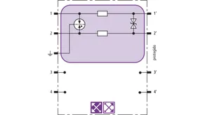 Módulo descargador combinado de corriente de rayo y sobretensiones con gran ahorro de espacio, con función RFID LifeCheck, para protección de un par de hilos de interfaces simétrica sin referencia a tierra, cumpliendo específicamente los requisitos de buses de campo Dupline, con puesta a tierra del apantallamiento directa o indirectamente. Si la función LifeCheck detecta sobrecarga eléctrica o térmica el descargador ha de ser reemplazado. Este estado se indica sin contacto por el lector DEHNrecord LC / SCM / MCM.