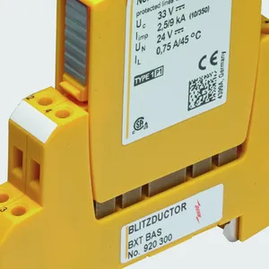 Módulo descargador de sobretensiones de gran ahorro de espacio, con función RFID LifeCheck, para protección de dos hilos de señal independiente hasta 250 V a.c. Si la función LifeCheck detecta sobrecarga eléctrica o térmica el descargador ha de ser reemplazado. Este estado se indica sin contacto por el lector DEHNrecord LC / SCM / MCM.