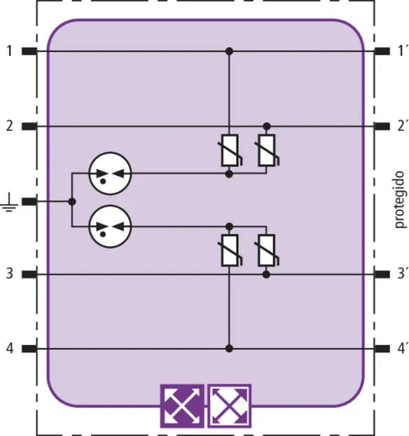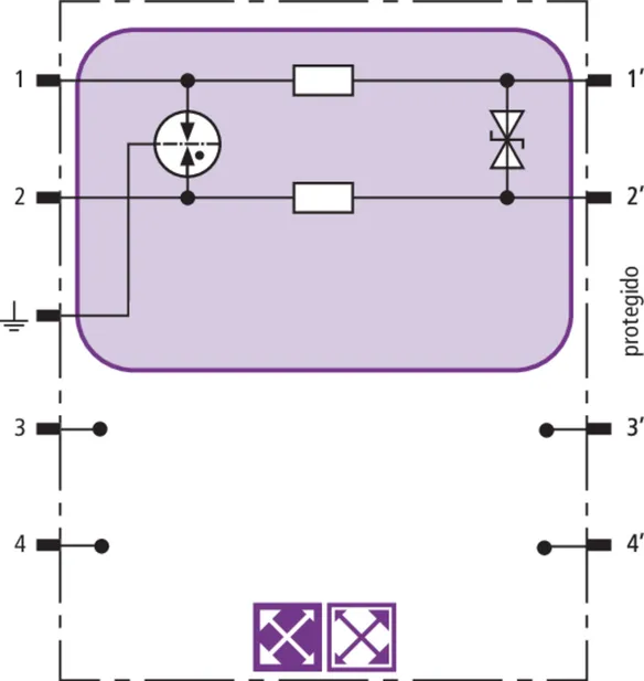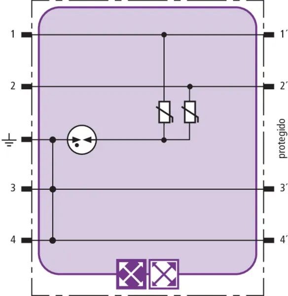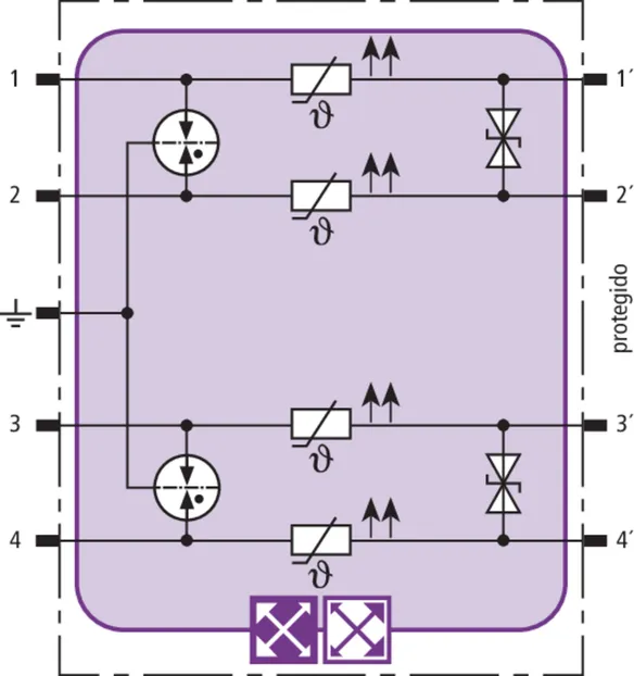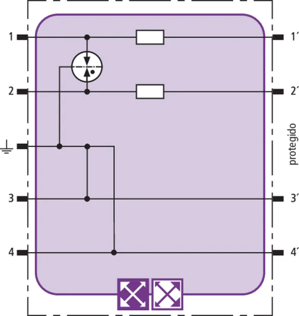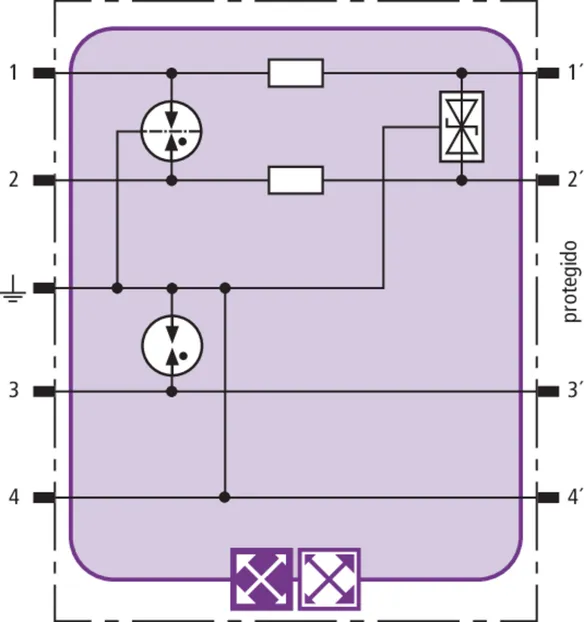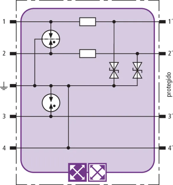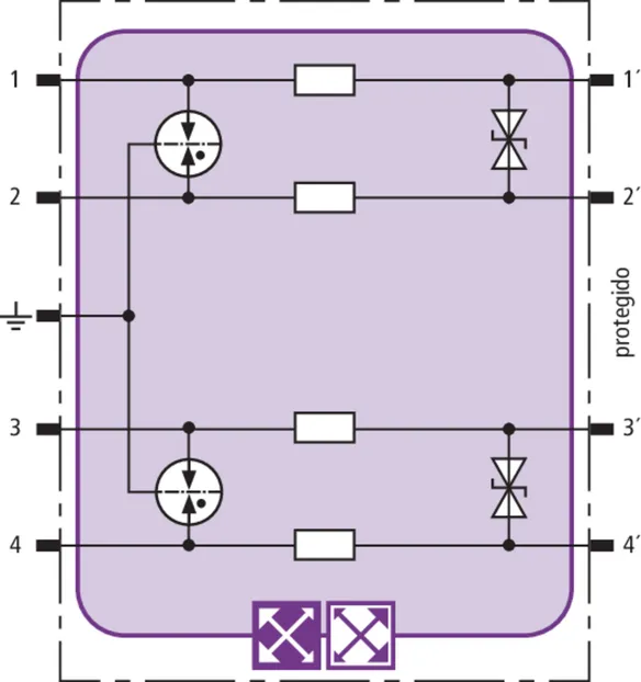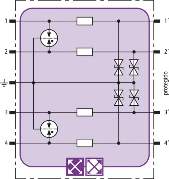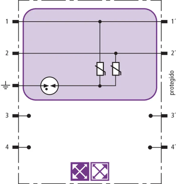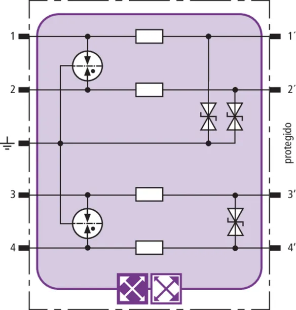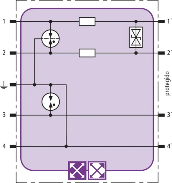 D1 Corriente de impulso de rayo (10/350 µs) por hilo: 2,5 kA