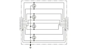 Descargador universal para Ethernet Industrial, alimentación por Ethernet (conforme a IEEE 802.3 hasta PoE++/4PPoE) y aplicaciones similares para sistemas de cable estructurado según clase E hasta 250 MHz. Protección de todos los pares a través de descargadores de gas y una matriz de filtros por par. Ejecución completamente blindada para montaje en carril DIN (hasta 1 Gbit Ethernet).