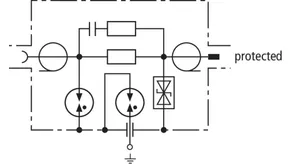 - Adaptador de protección contra sobretensiones para cables coaxiales