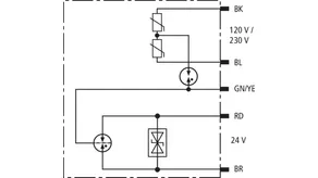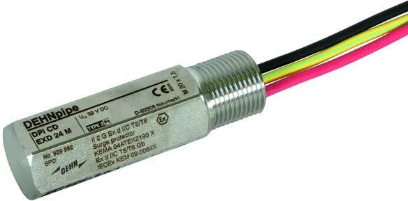 Descargador de sobretensiones antideflagrante para la protección del suministro de energía 120/230 V e interfaces de datos a 24 V de equipos de campo situados en atmosferas potencialmente explosivas (zonas 1 y 2).
