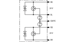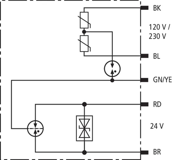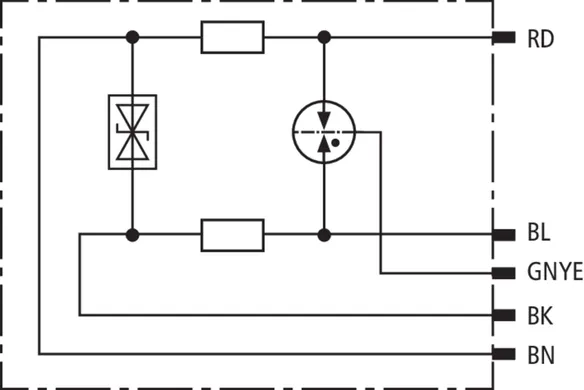 Descargador de sobretensiones de dos etapas, coordinado energéticamente, con circuito de protección de baja capacidad para protección de circuitos de medida con seguridad intrínseca y sistemas de bus. Cumple con requerimientos FISCO. Resistencia de aislamiento > 500 V a tierra. Los racores de cables deben solicitarse por separado.