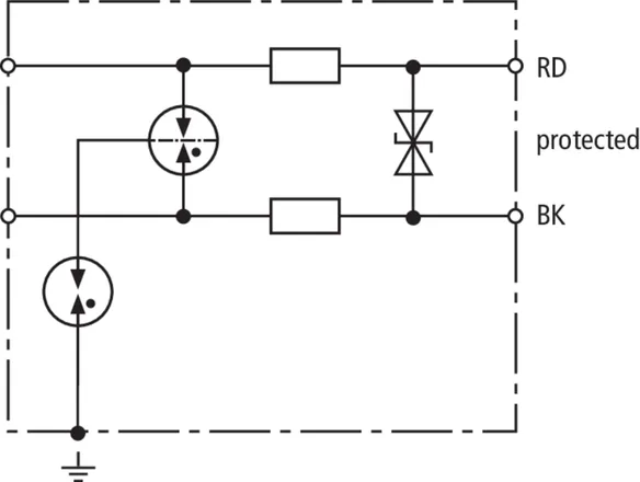 | D1 Corriente de impulso de rayo (10/350 µs) hilo-PG (Iimp ) | 1.5 kA |