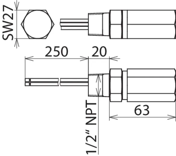 | Para montaje en (campo/lado de equipo) | 1/2-14 NPT rosca interior / 1/2-14 NPT rosca exterior |