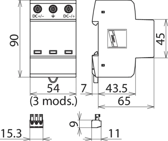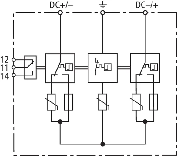 | Corriente nominal de descarga (8/20 µs) [(DC+/DC-) --> PE] (In ) | 12,5 kA |
