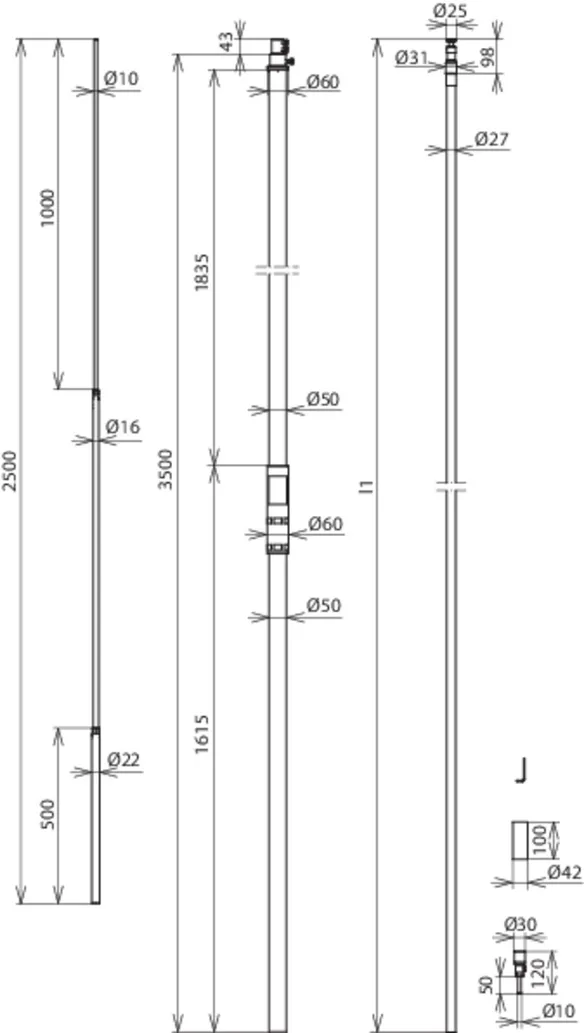 | Máx. longitud libre con punta captadora (montaje en pared) | 3500 mm |