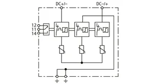 | Corriente total de descarga (10/350 µs) [DC+/DC- -> PE] (Itotal ) | 12,5 kA |