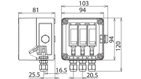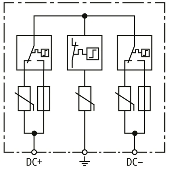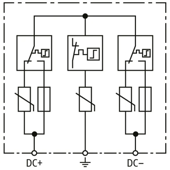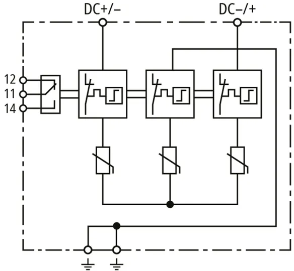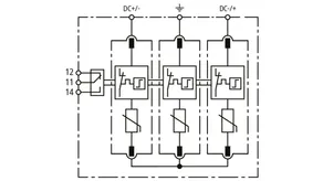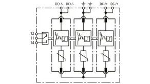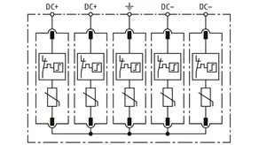 | Máxima corriente de descarga (8/20 µs) [(DC+/DC-) --> PE] (Imax ) | 25 kA |