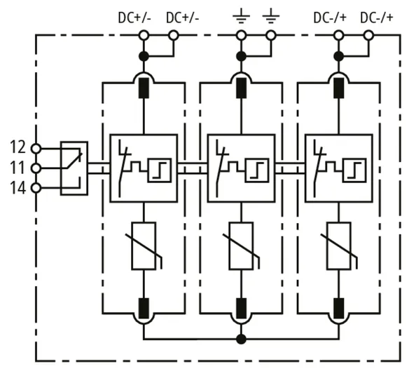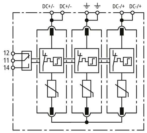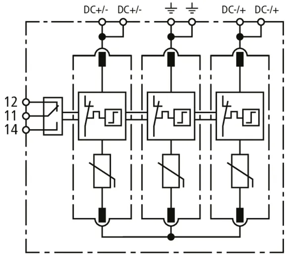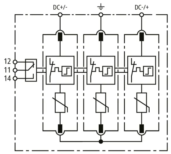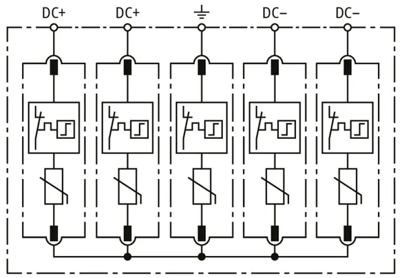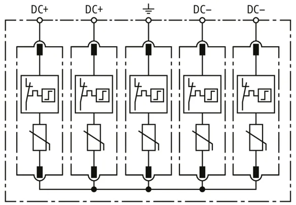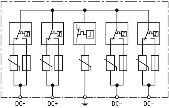 | Máxima corriente de descarga (8/20 µs) [(DC+/DC-) --> PE] (Imax ) | 40 kA |