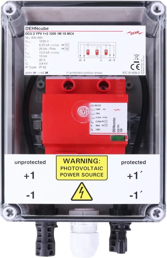 | DPS según EN 61643-31 / ... IEC 61643-31 | Tipo 1 + Tipo 2 / Clase I + Clase II |